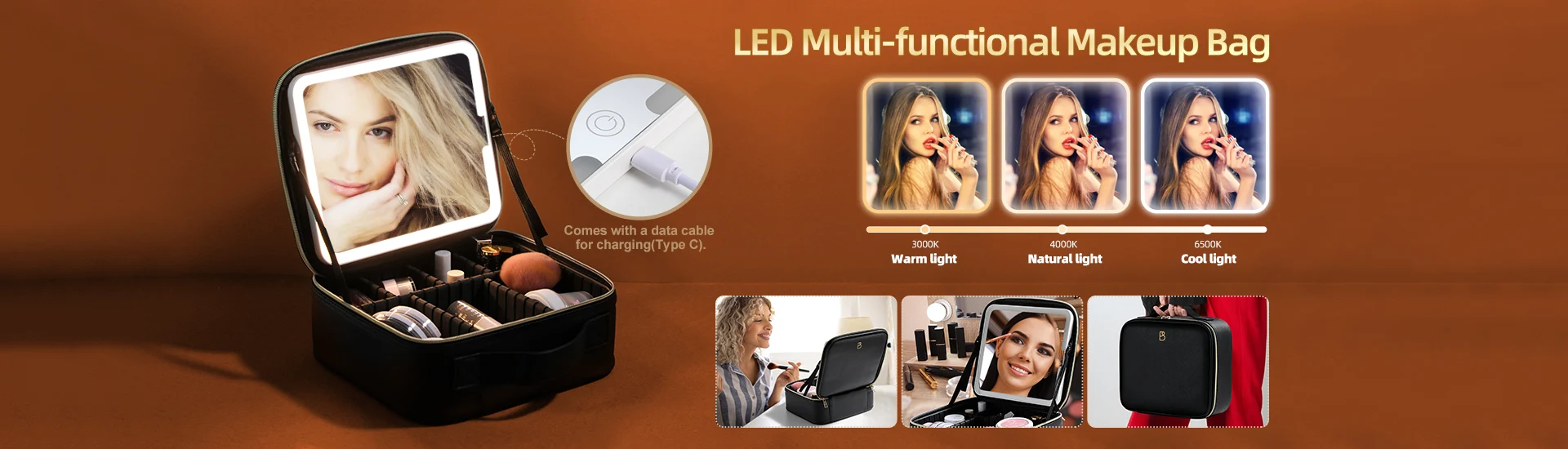 *Professional 3 Color Fill Lights with 4K Makeup Mirror